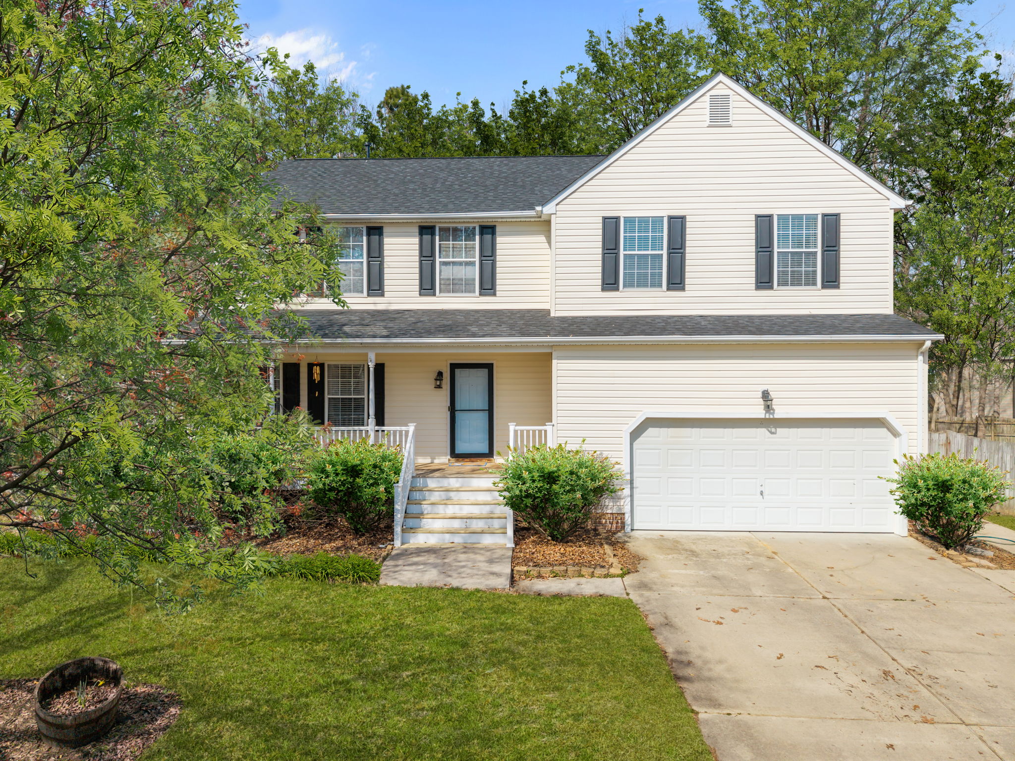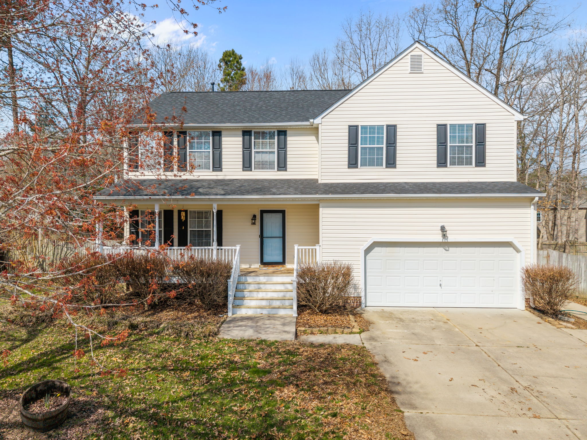Move in ready home on a cul-de-sac with a fenced in backyard. Home was freshly painted (2026), updated eat in kitchen with granite, custom island, white shaker style cabinets, stainless steel appliances, luxury vinyl flooring, family room with gas fireplace, additional room can be hidden away by way of barn style door, updated lighting throughout, generous size owner's suite with enough space for sitting area, oversized back patio, 50 year architectural shingle roof with transferrable warranty (2024), crawlspace dehumidifier (2024). Community offers wide roads that lend themselves to bike riding or walking, numerous cul-de-sacs, community pool, and community events.