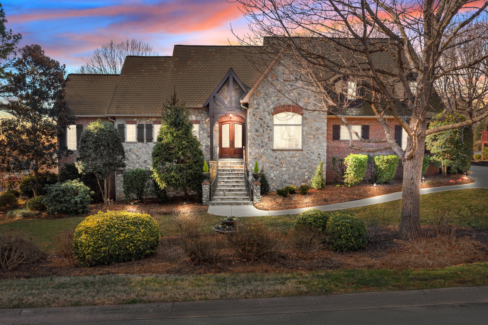 Nestled in the coveted West Bay community, this custom French Country home features a stunning stone & brick exterior with European-style squeeze joints & lush landscaping. Inside, teak wood floors & a coffered ceiling enhance the family room, where a custom fireplace mantel & built-in speakers create an inviting atmosphere. The gourmet kitchen offers ample storage, extensive prep space, a Wolf cooktop, paneled refrigerator & freezer, double oven, travertine backsplash, granite counters, & a walk-in pantry. The main-level primary suite boasts dual walk-in closets, a spa-like travertine shower, a jetted tub, & custom cabinetry. A guest suite, dining room, & screened porch complete the main floor. Upstairs, versatile bonus room or 5th bedroom includes a full bath & closet. The lower-level features a wine room, kitchen, fireplace, walk-out patio, two bedrooms, full bath, & a large storage. HOA dues include deeded boat storage, gated community boat ramp & dock. The home also includes an On-Q system. 3 car garage.